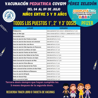 El Área de Salud de Pérez Zeledón ya esta aplicando la cuarta dosis contra Covid 19 a mayores de 12 años y toda persona de 18 años en adelante, cumplidos los 4 meses desde su tercera dosis.