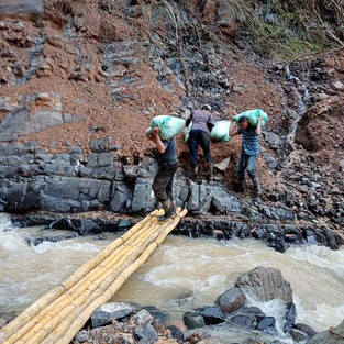Esto sucede con los vecinos de Calle Fallas en Los Ángeles de Paramó, que entre palos de bambú cruzan la quebrada para llevar en sacos, nuestro querido café hasta sus casas o al mundo.